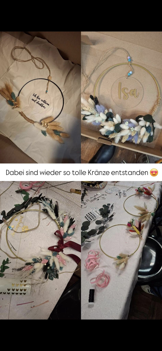 Hier könnt ihr euren eigenen Türkranz mit Trockenblumen nach eurem Geschmack erstellen. Die Ringe sind 20 cm & können nach Wunsch mit individuell gestalteter Acrylglasscheibe gestaltet werden.